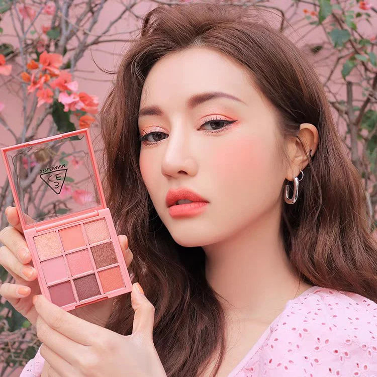 Eye palette that comes with 9 shades of blossom-like Pink & Peach tone colors to create various gorgeous, blooming spring looks Different textures of soft matte, creamy shimmer, sparkling glitter enable versatile looks beyond basics The smooth, silky texture is buildable and blendable without clumps How to use: 1. Apply a base shade all over your eye lid. 2. Apply the color that you want to stand out on your eye line, outer edges of your eyes, or use it as a gradation shade. 3. Use sparkling glitter shade to highlight the inner corner of your eyes, water line, brow bone, or other areas that you want to brighten up