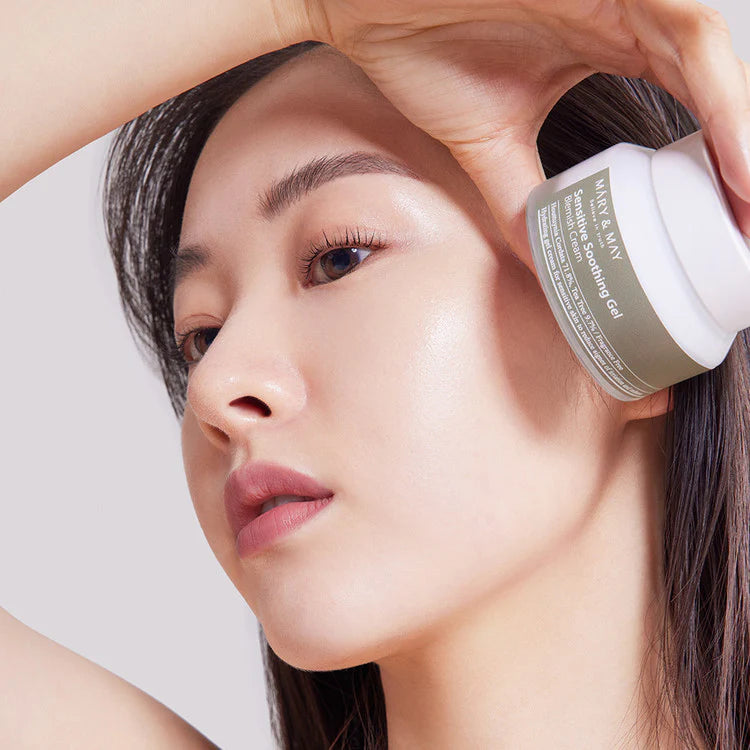 The Sensitive Soothing Gel Blemish Cream is a fast-acting moisturizing cream designed for sensitive skin, offering immediate cooling, soothing, and pore care effects. It features a patented core soothing ingredient, DSC™ (Derma Soothing Complex), which quickly soothes damaged skin from external irritants. Clinically proven, it reduces skin inflammation by 14%, external irritation by 15%, and skin redness by 9% after two weeks. Additionally, it improves pore count, density, and depth by 32.7% within two weeks, and has been tested for suitability on sensitive skin.